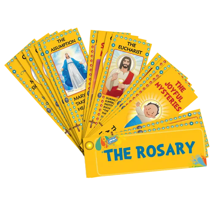 Teach children the Rosary with the help of Brother Francis’ “The Rosary” devotional fan! This colorful booklet includes 42 pages of eye-catching illustrations depicting the prayers of the Rosary with all four mysteries. The Rosary Fan is bound by a metal grommet and is sturdy, making it easy to carry everywhere you go.