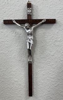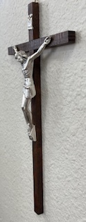 A beautiful crucifix features a striking wenge wood slim line design with a silver corpus. Beautifully detailed crucifix crafted with fine attention to detail symbolizing strength and elegance. This crucifix is inspiring and a meaningful gift. A gift that will always be cherished. A powerful reminder of faith and sacrifice. Perfect for the wall in any room of the home, church, chapel, sacred spaces or personal devotion.