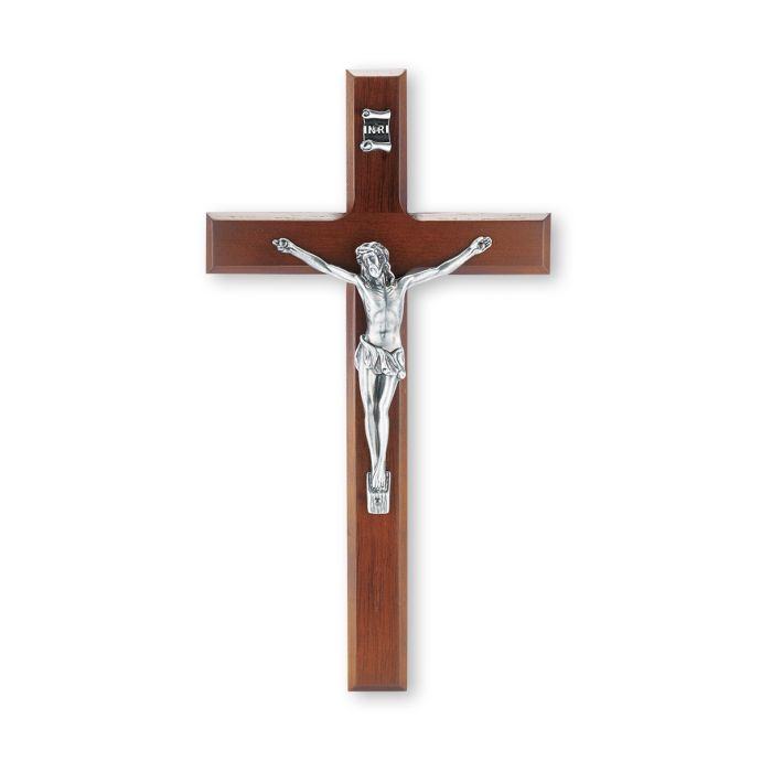 Exceptional quality at affordable pricing. The deluxe 10″ Walnut Finish Cross displays the superb antique silver-finish corpus, made in the USA by some of the finest craftsmen. Truly a work of art. Crucifixes make great gifts for any occasion, such as Ordinations, Jubilees, Anniversaries, Weddings, Birthdays, Holidays, or Sacramental Occasions.