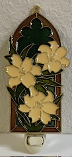 Add a little extra light at night to any room in your home with an Easter Lily devotional night light. This night light features beautifully designed details with imitation stained glass night light. The night light can also be a suncatcher.