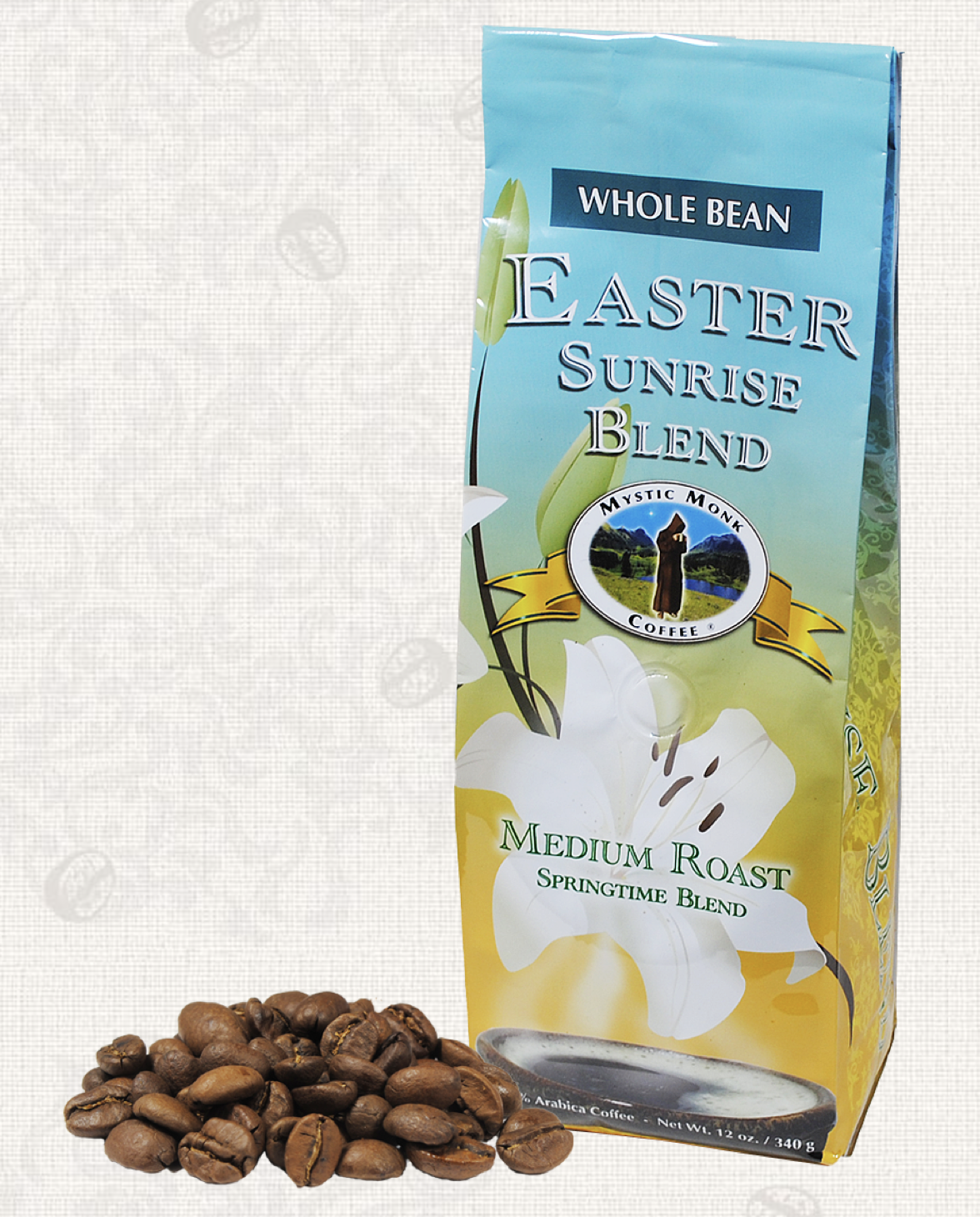 Bright as the Easter Sunrise, with citrus, floral and chocolate tones and smooth, complex aftertaste. Medium Roast. Limited Edition Springtime blend. WHOLEBEAN.