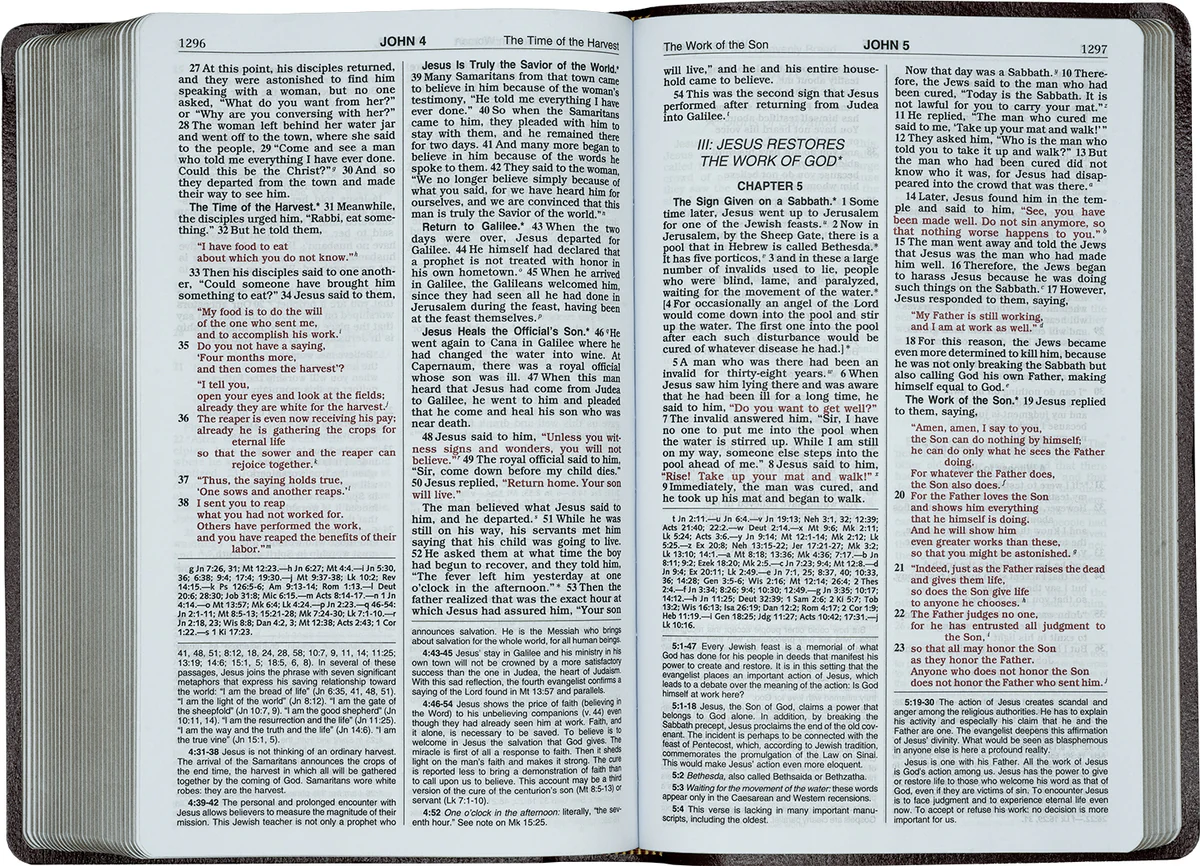 A fine companion for the spiritual journey, this edition is intended to be used by Catholics during private prayer, meditation, and study. The convenient 5 x 8‚ format with gold-stained edges comes in an attractive variety of colors, other bindings, and varied price points.