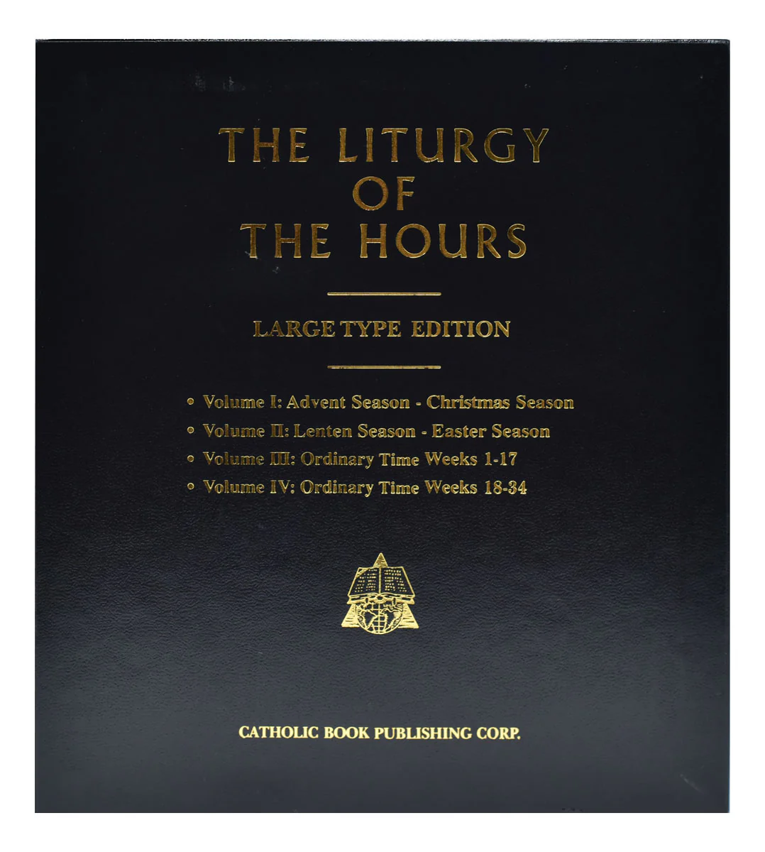 The complete set of the official English edition of the Liturgy of the Hours (Divine Office) contains all four volumes of the translation approved by the International Committee on English in the Liturgy. Includes the current St. Joseph Guide for the Liturgy of the Hours (Large-Type Edition), the Liturgy of the Hours Supplement (Large-Type Edition), and Inserts for the Liturgy of the Hours (Large-Type Edition). Additional copies of the current St. Joseph Guide for the Liturgy of the Hours are available. Printed in two colors in large 14-pt. type and bound in bonded leather, this complete four-volume set of the Liturgy of the Hours includes handy ribbon markers and features a gold-stamped spine and elegant gilded page edging.